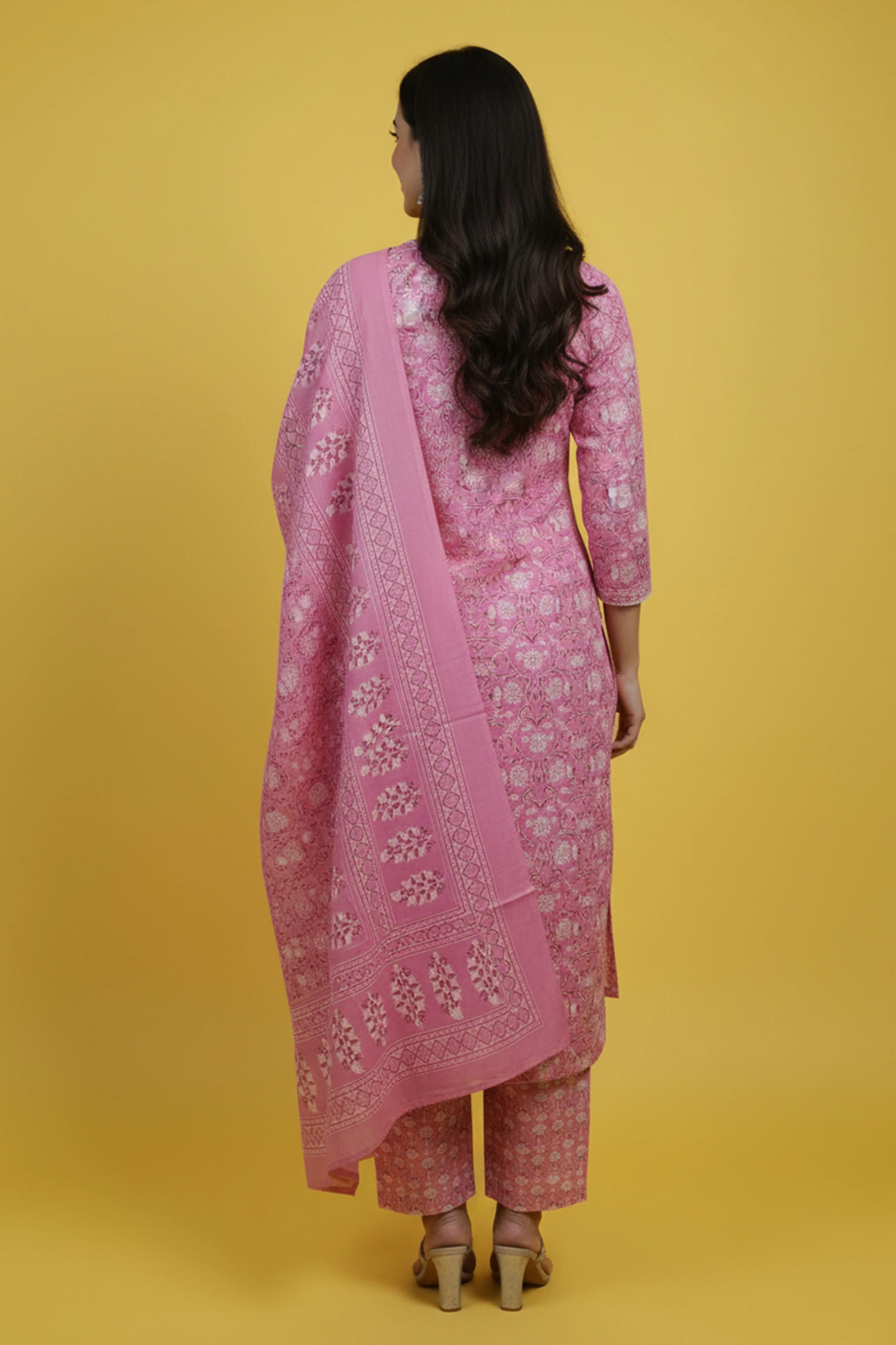 Beautiful Pink Floral Printed Pure Cotton Straight Cut Suit Perfect for Casual Wear