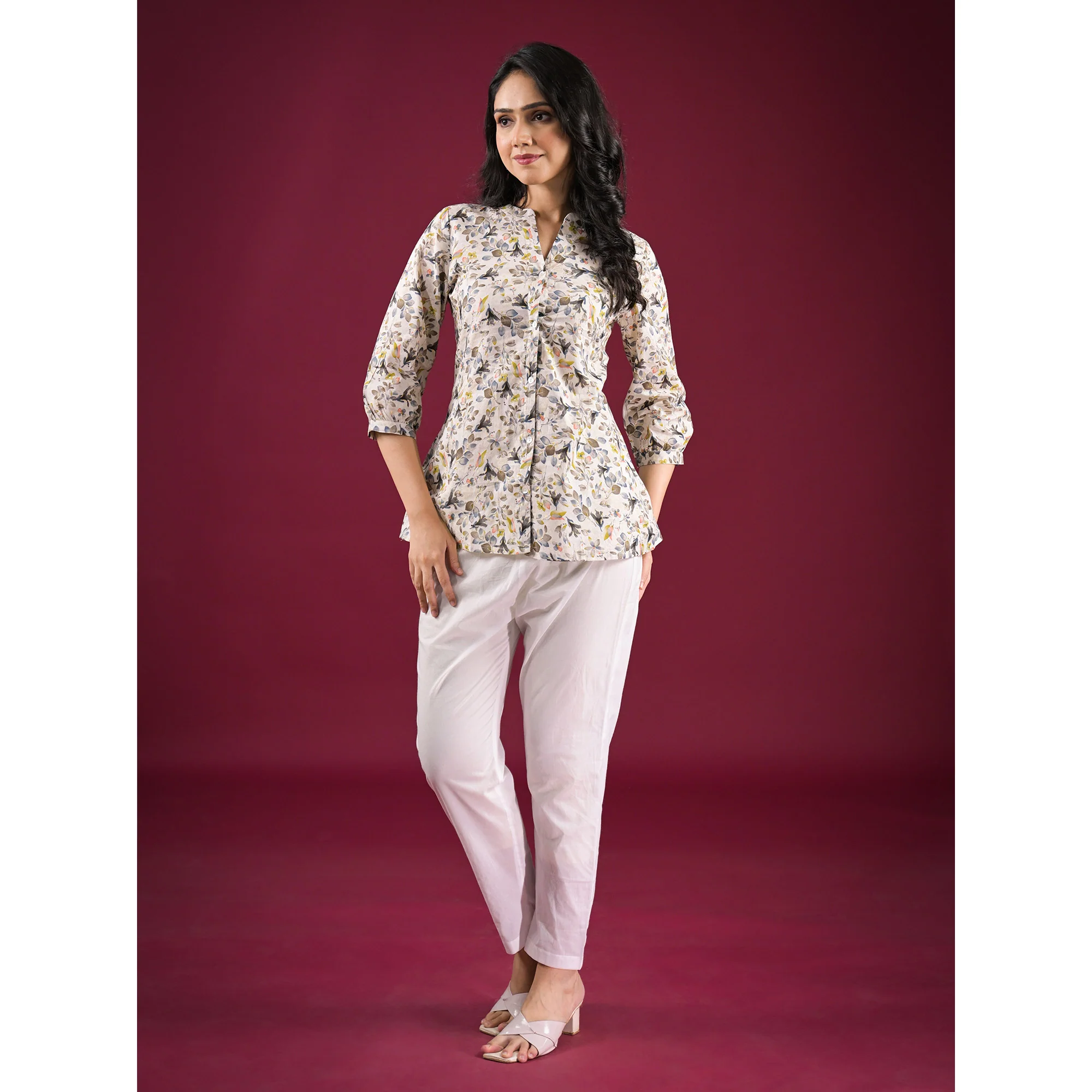 Grey color top is fashioned on pure cotton fabric which is lightweight and assures the wearer a perfect fit & comfort. This stitched top is beautified with floral printed work as shown. Ideal for office, casual, outing & weekend get together.