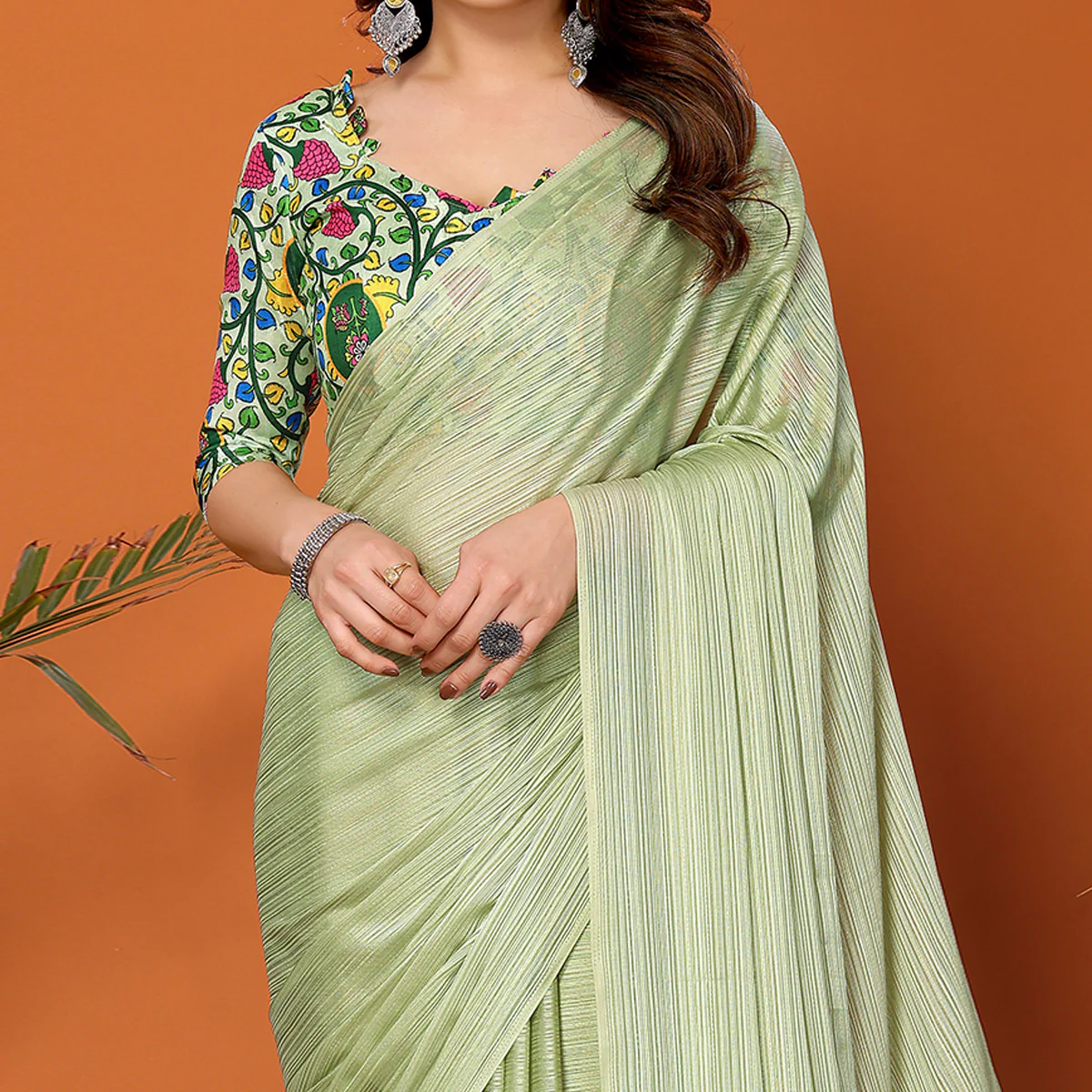 Pista Green colored saree is made from satin polyester zari fabric which is highlighted with weaving work as shown. comes along with banglori blouse piece which you can customise as per your design/style. Occasion - You can wear this saree for festive and functions.