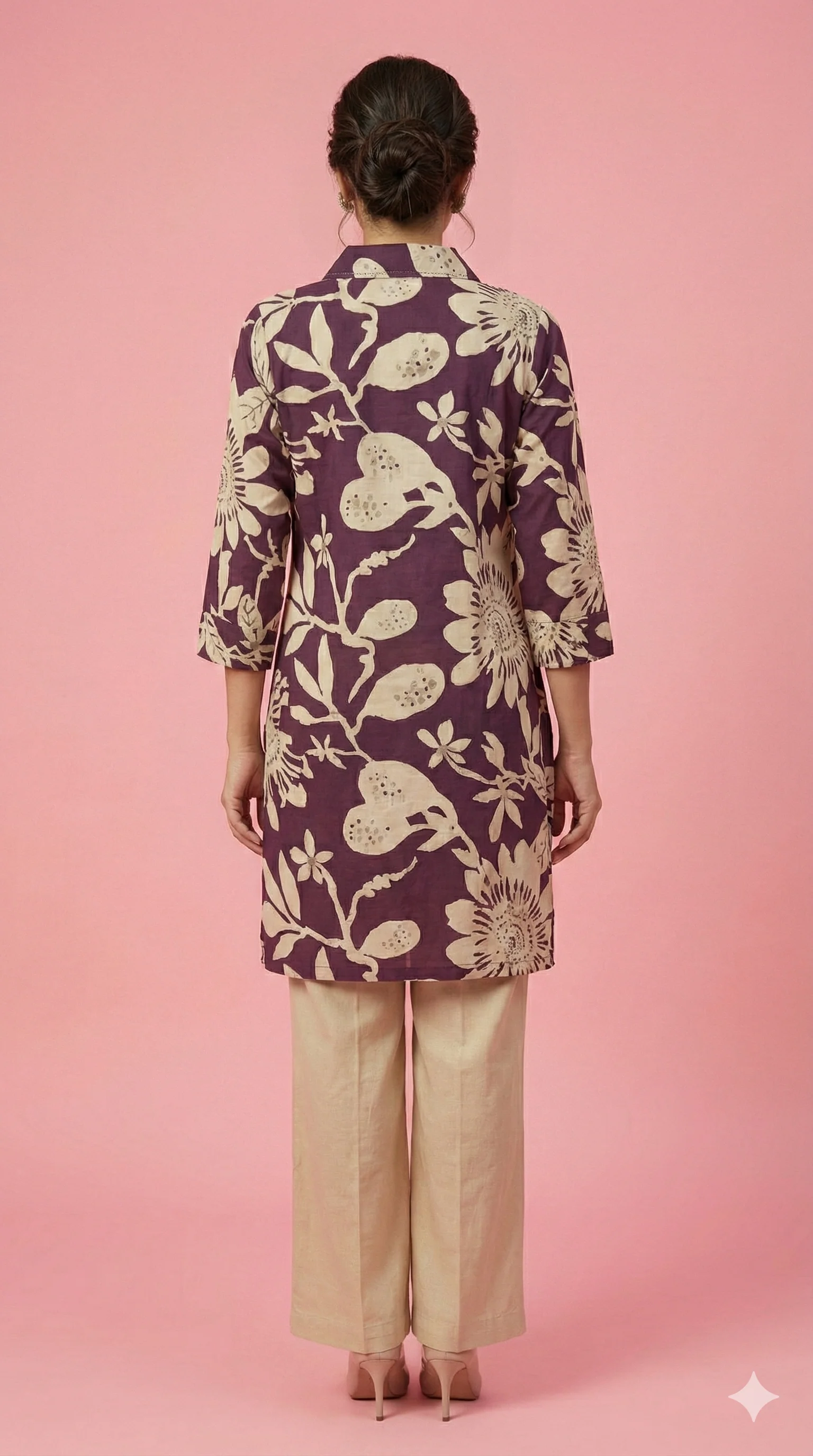 - Color & Design: Purple colored suit beautified with elegant floral print, giving it a classy and graceful appearance.